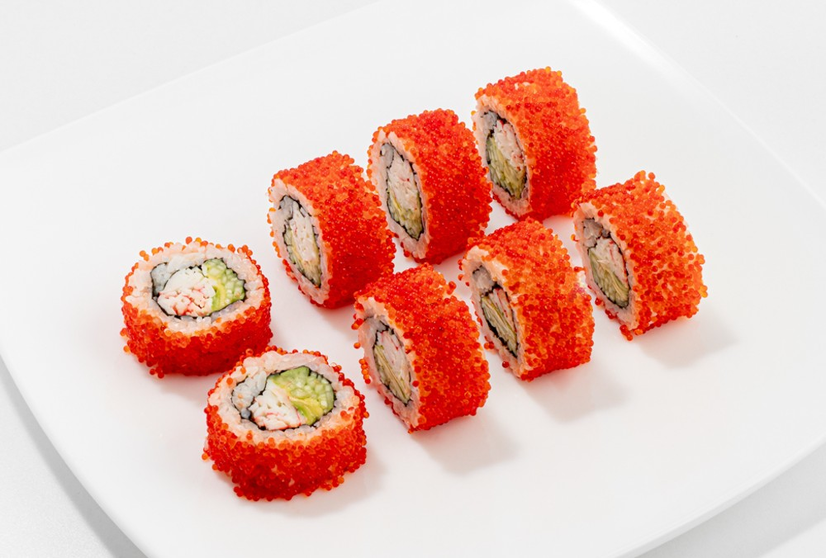 ნორი, ბრინჯი, თოვლის კიბორჩხალა, კიტრი, ავოკადო, იაპონური მაიონეზი, ხიზილალა ტობიკო