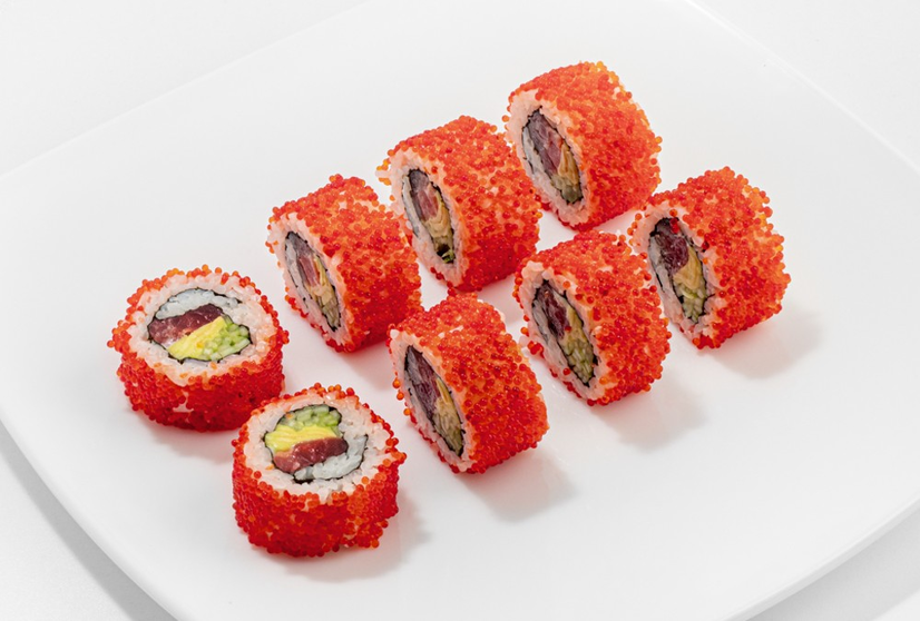 ნორი, ბრინჯი, თინუსი, კიტრი, ავოკადო, იაპონური მაიონეზი, ხიზილალა ტობიკო