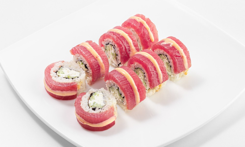 ნორი, ბრინჯი, კრემ ყველი, კიტრი, ტუნა, სპაისი სოუსი