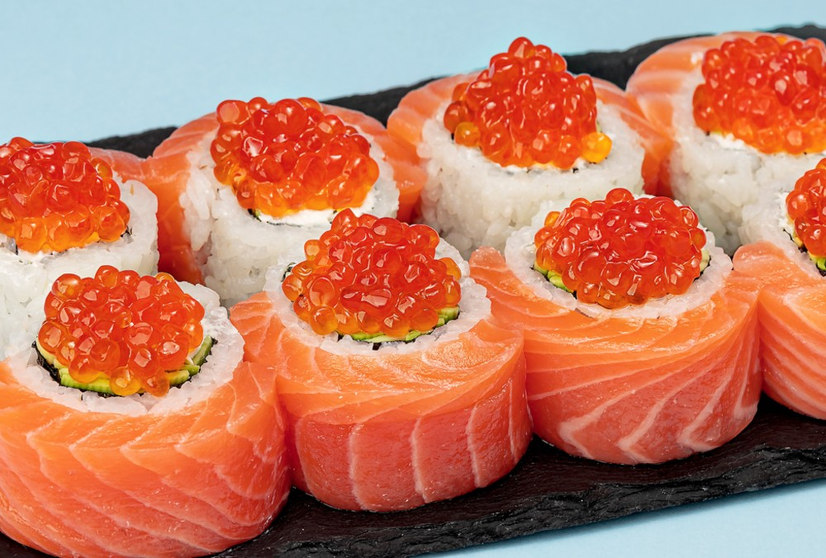 ნორი, ბრინჯი, ყველი ფილადელფია, ავოკადო, ორაგული, კალმახის წითელი ხიზილალა