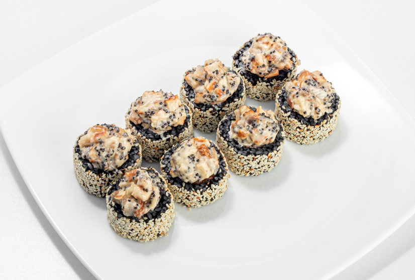 ნორი, შავი ბრინჯი, ორაგული, გველთევზა, ყველი ფილადელფია, ავოკადო, სეზამის მარცვლები, ხიზილალა ტობიკო, უნაგის სოუსი
