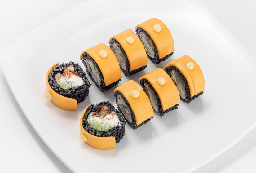 ნორი, შავი ბრინჯი, გველთევზა, ყველი ფილადელფია, კიტრი, ყველი ჩედერი, იაპონური მაიონეზი